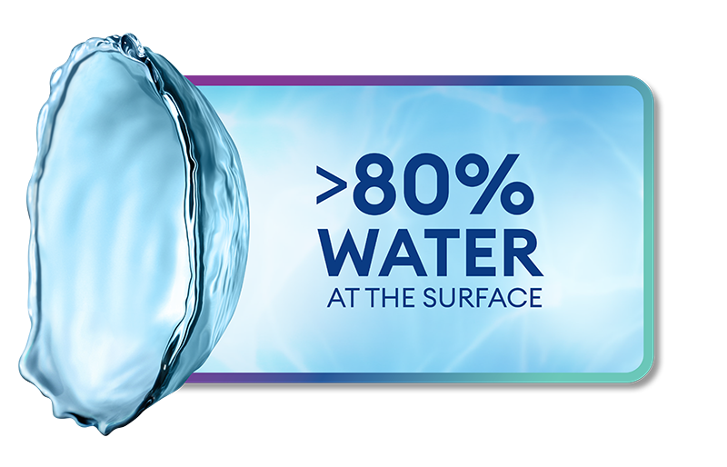 High-performance layer of moisture on the lens surface with more than 80% water.³†