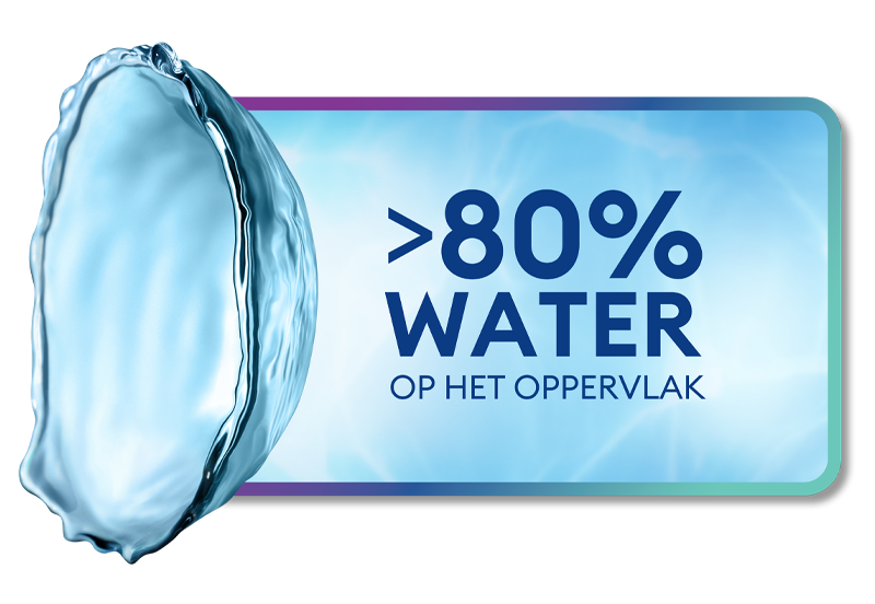 Een deel dun vochtlaagje op het lensoppervlak, met meer dan 80% water. ³†